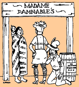 On the subject of grammar, "El Comancho" (as he referred to himself) warns: "The construction of all Indian language is similar to German. Chinook, when properly spoken, has the same peculiarity. For instance, an Indian would say 'have you my father seen?' and not 'have you seen my father?' A great many people who speak Chinook use Chinook words with English construction of sentences Well, all Indian languages are not constructed alike, any more than all Old World languages are constructed alike. Following are a few examples of Ka naika man? ("Where me husband?"):
