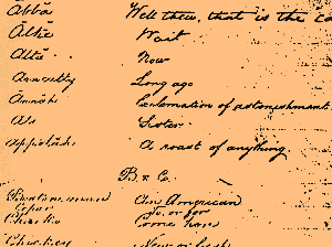 "I have endeavored, in compiling the following vocabulary of the language spoken by the natives of Barclay Sound on the West Coast of Vancouver Island, to secure a faithful production of the sounds when read. . . . The vocabulary has been compiled with care and written down from the mouths of different intelligent natives. Words obtained from one Indian have been carefully compared with the testimony of others, and any defect or peculiarity of pronunciation has been immediatly corrected. The Barclay Sound language differs slightly from that spoken at Clayoquot Sound and a considerable difference exists at Nootka, but the Indians all understand the language of Barclay Sound on a greater or less degree. It's unnecessary to give the whole word list, since the definitions and pronunciation are, with the exception of a very few minor items, Chinook Jargon as we know it today. The spelling is interesting in that the letter "R" is used. It is, of course, silent. Here, then, are some of the sentences and translations the author has provided: