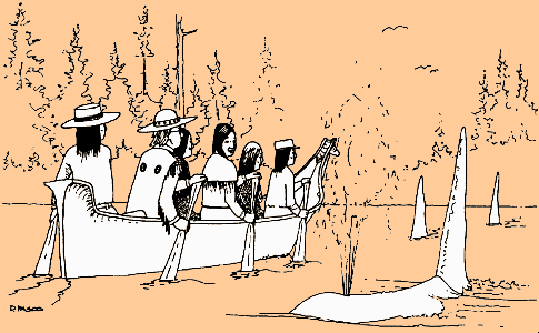 Looking back, Jim saw several canoes heading north into what would later be called Miller Bay. The Chief had explained earlier that salmon weirs were set up there at the mouth of the creek. Men, women and children would be harvesting and smoking fish all this day and for days to come, preparing for their winter's needs.